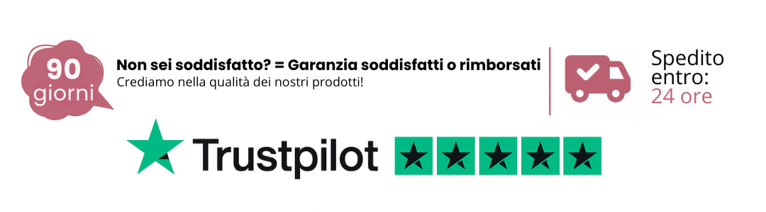 Crediamo profondamente nella qualità dei nostri prodotti, ed è per questo che ti offriamo una garanzia estesa di 90 giorni, completamente senza rischi.